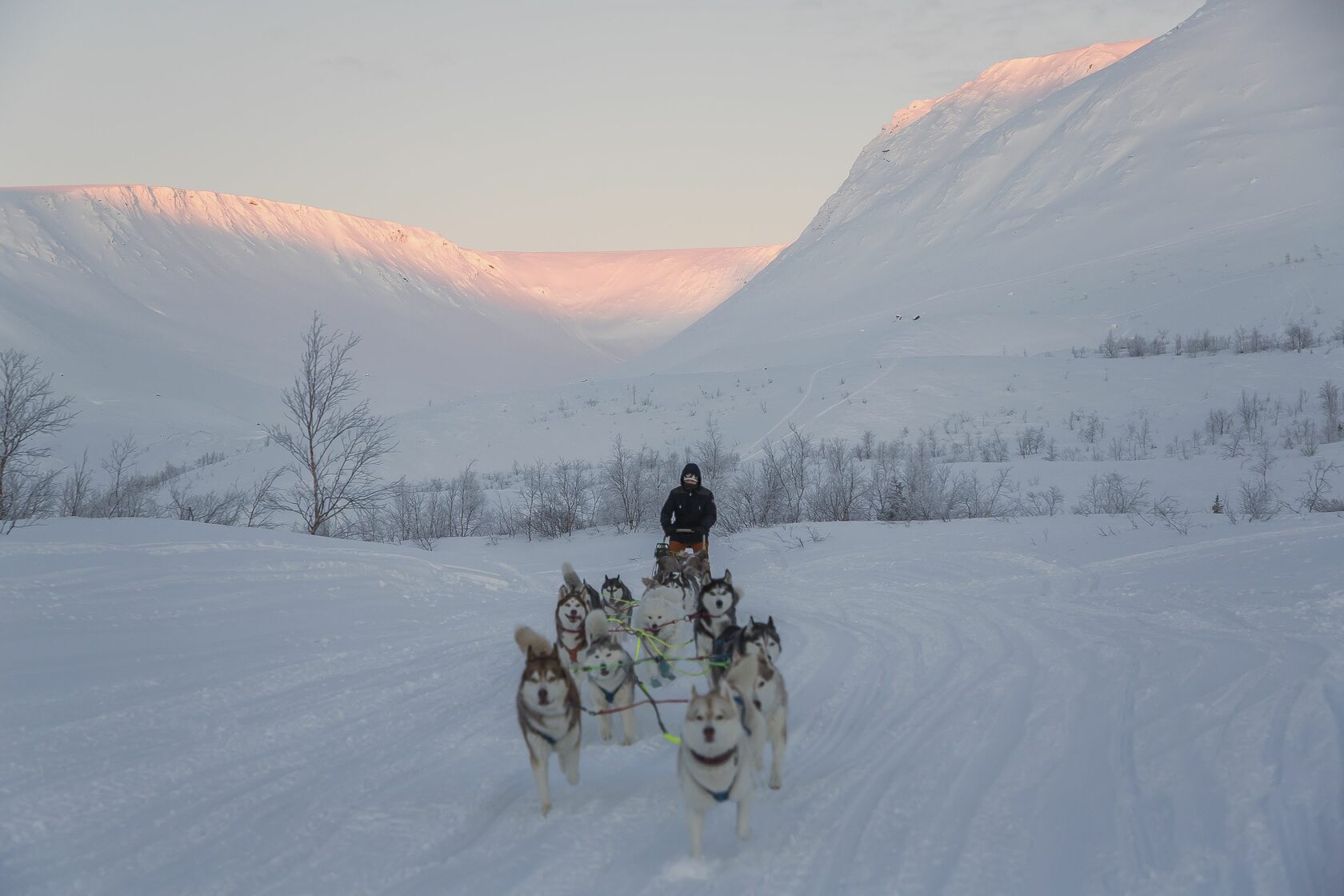 Сначала мы едем в горы Хибины в долину Малый Вудьявр кататься в упряжке хаски.